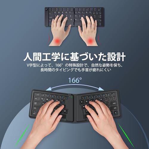 斜めでいて、左右でキーボードがわかれているので長時間作業でも手が疲れにくくなっています。