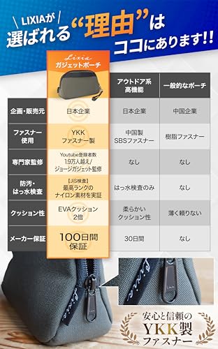 素材はポリエステルなので水耐性が低いことは残念ですが、仕切りを自分でカスタマイズできるなど使い勝手が良いのでおすすめです。